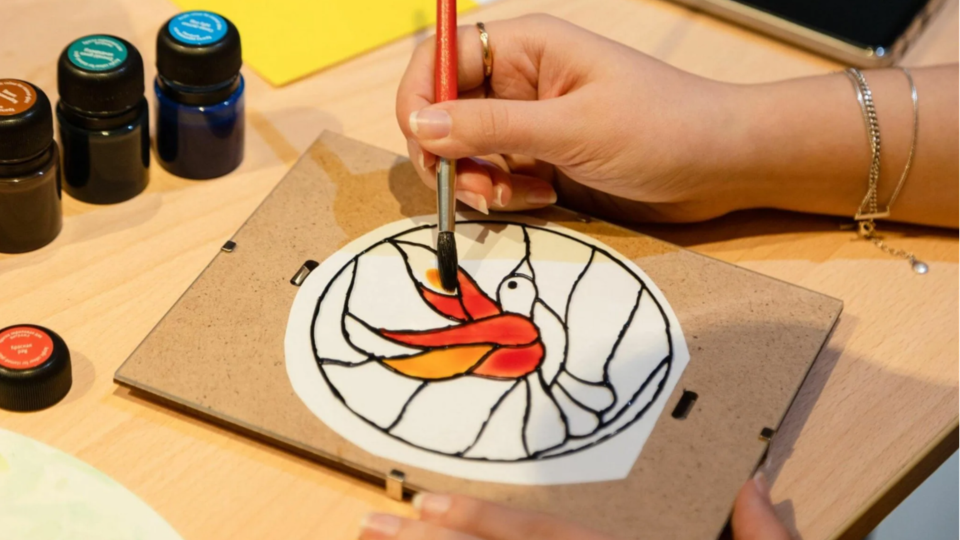 Многослойная картина из тончайших листов разноцветной бумаги. Его размещают прямо на стекле и рассматривают на просвет